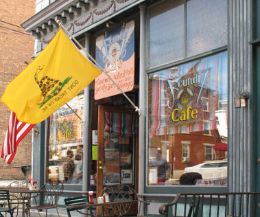 signpost points to the right for Route 301. You’ll find yourself driving down Main Street, and what an amazing Main Street it is. Even if you’re not into antiques and the other goodies that the shops have to offer, the buildings themselves are a feast for the eyes, and you’re not likely to resist visiting one of the many cafes to try their special baked goods and coffee. I enjoyed a raspberry scone and a pumpkin-flavored coffee at the Cup-o-ccino Cafe.